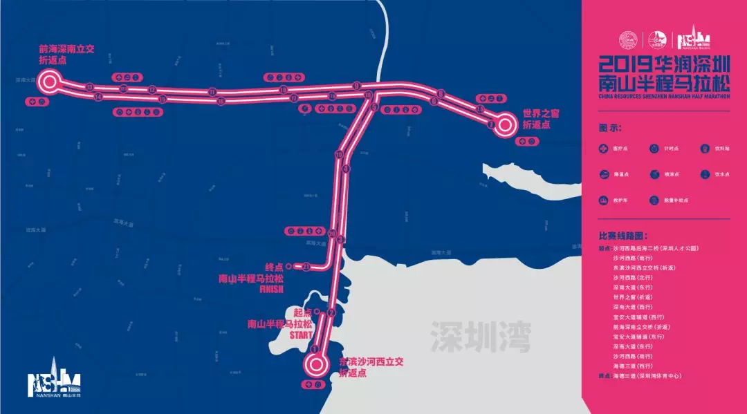 值得一提的是,今年南馬的路線較去年略有調(diào)整,賽事線路整體呈T字形,賽道起點(diǎn)在沙河西路后海二橋(深圳人才公園東門),賽道終點(diǎn)在海德三道(深圳灣體育中心),賽道主體由沙河西路和深南大道組成一縱一橫,途徑深圳灣總部經(jīng)濟(jì)片區(qū)、高新技術(shù)園、大沙河生態(tài)長廊、世界之窗、南頭古城等多個地標(biāo)性建筑,不僅彌補(bǔ)了往年沒有經(jīng)過深圳灣海域的遺憾,讓選手在賽跑之余一覽灣區(qū)海景,更向選手與觀眾充分展示南山自然人文科技之美。