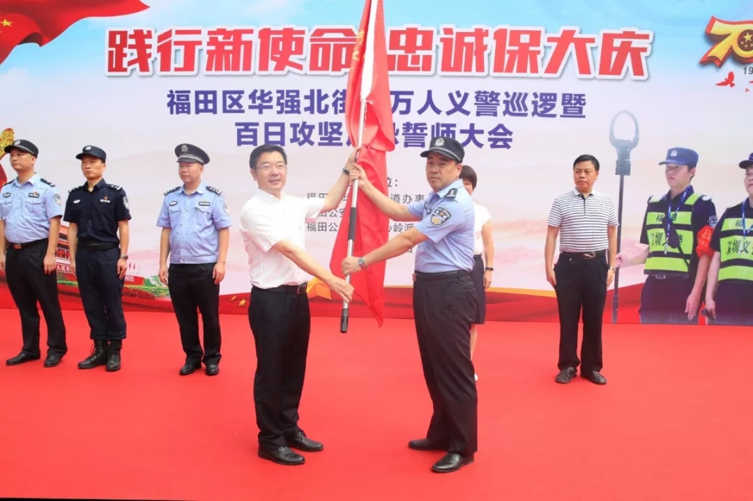 據(jù)了解,為全面推進(jìn)群防群治建設(shè),夯實(shí)基層基礎(chǔ)工作,拓寬群防群治領(lǐng)域,提升群防群治效能,筑牢社會(huì)治安防控體系,12日上午9時(shí)30分,深圳市福田區(qū)華強(qiáng)北街道萬人義警巡邏?mèng)甙偃展?jiān)反恐誓師大會(huì)在華強(qiáng)酒店廣場(chǎng)舉行,華強(qiáng)北街道辦黨工委書記陳曉中,福田公安分局副局長譚慶彬,華強(qiáng)北街道副書記楊華蘭,福田公安分局治安科科長左樂,華強(qiáng)北派出所副所長張瓊漫、黃強(qiáng),通心嶺派出所副所長劉景波等相關(guān)部門負(fù)責(zé)人參加儀式并發(fā)表講話。本次大會(huì)的舉行,意味著福田義警隊(duì)伍再添中堅(jiān)力量。