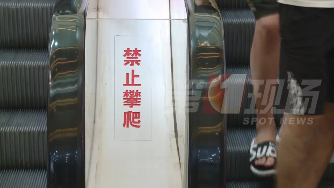 記者看到,這家商場已經(jīng)在手扶電梯處,設(shè)置了一些“禁止攀爬”,“小孩必須拉住”的安全警示標(biāo)志。