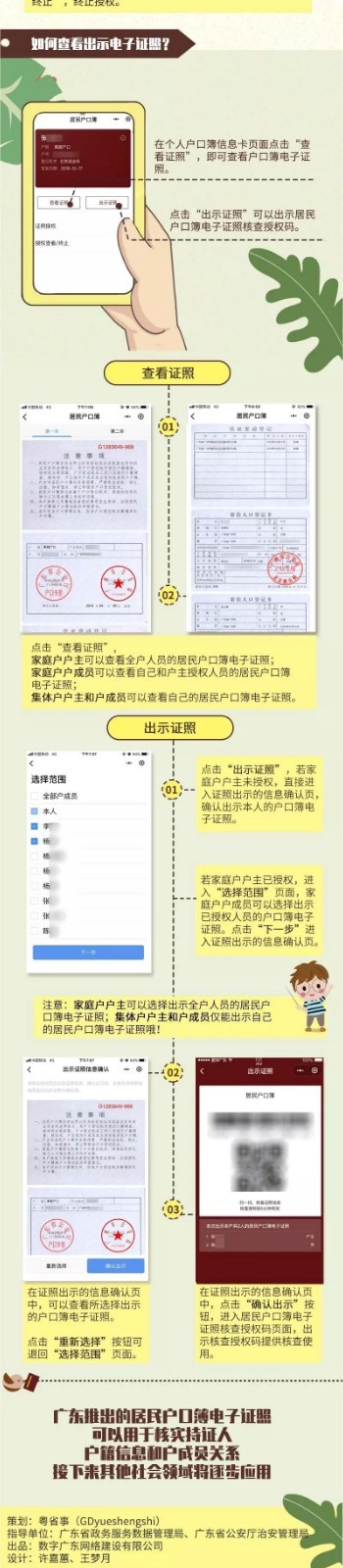 廣東推出的居民戶口簿電子證照可以用于核實持證人、戶籍信息和戶成員關系,接下來其他社會領域?qū)⒅鸩綉谩?/p>