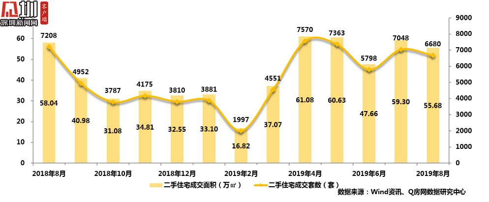 從深圳來看,8月一二手住宅成交均呈下降趨勢。據(jù)Q房網(wǎng)數(shù)據(jù)研究中心統(tǒng)計,8月深圳一手住宅共成交3038套,環(huán)比下跌16.29%,同比下跌17.62%。二手住宅共成交6680套,環(huán)比下跌5.22%,同比下跌7.33%;成交均價55688元/㎡,整體量跌價漲。