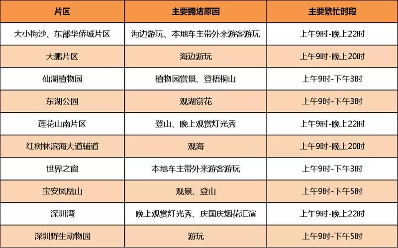 假日期間市內(nèi)交通每個時間段相對均衡,不會出現(xiàn)工作日的早晚高峰,車輛主要集中在市內(nèi)各景點和商圈周圍,預(yù)計東部景區(qū)將會迎來巨大壓力,尤其是大小梅沙、東部華僑城、鹽壩高速葵涌出口。