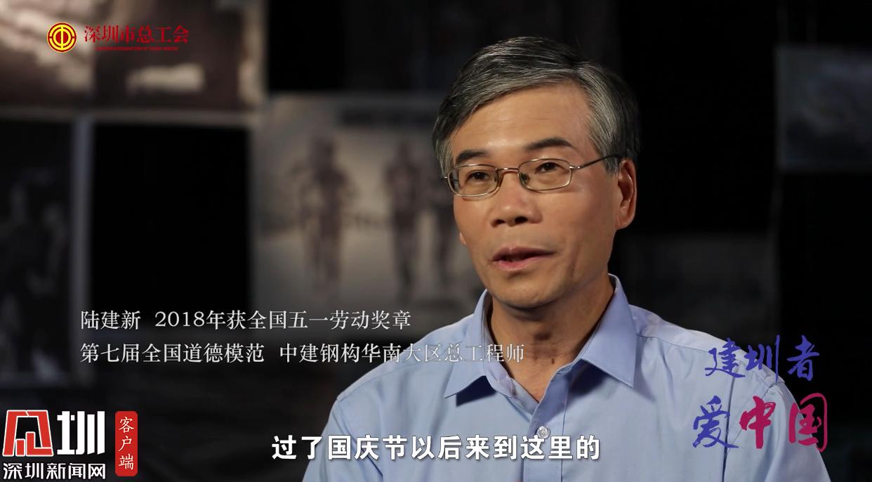 中建鋼構(gòu)華南大區(qū)總工程師陸建新于2018年獲得全國五一勞動獎?wù)?,他也是第七屆全國道德模范?8歲就已來到深圳參與國貿(mào)大廈建造的他,談及在深圳奮斗的歷程時,幾乎是熱淚盈眶。