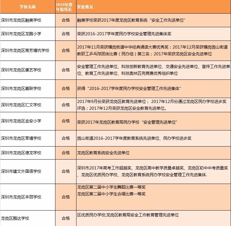 近日,深圳教育局在其官網(wǎng)發(fā)布深圳市民辦中小學(xué)辦學(xué)情況信息公告。最新公告顯示:2018年度年檢結(jié)論為“不合格”的學(xué)校共有8所,“基本合格”的有12所,其他均為“合格”或“不滿一年未年檢”。其中,不合格的8所學(xué)校分別為:深圳市富源學(xué)校、深圳市展華實驗學(xué)校、深圳市龍華區(qū)愛孚實驗學(xué)校、深圳市龍華區(qū)寶文學(xué)校、深圳市龍華區(qū)牛欄前學(xué)校、深圳市龍華區(qū)六一學(xué)校、深圳市龍華區(qū)博恒實驗學(xué)校和深圳市龍華區(qū)偉民小學(xué)。主要涉及違規(guī)招生問題。