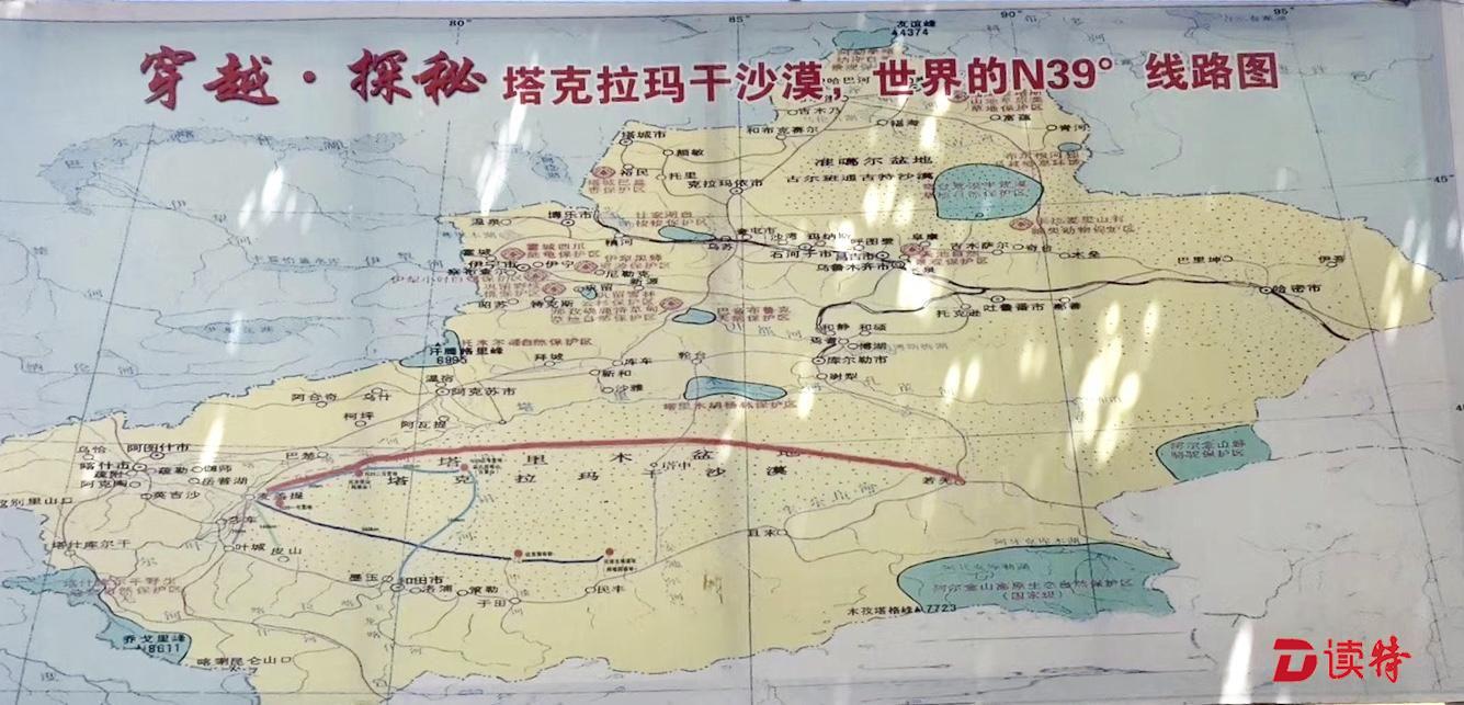 1895年,來自瑞典的著名探險家斯文·赫定率領他的團隊沿著北緯39度線行進,試圖橫穿塔克拉瑪干沙漠,但由于對困難的估計不足,他和他的團隊只行進了300公里便由于干渴和迷路幾乎死光了所有的隊員和駱駝,僥幸逃生的只有兩人,從那之后,N39便被眾多考古學家、探險家與越野愛好者所熟知。