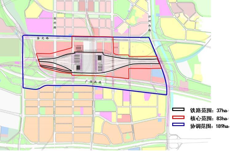 本次方案征集任務分核心區(qū)和協(xié)調(diào)區(qū)兩個層面。核心區(qū)面積約83ha(下圖紅色線范圍),本次方案征集需完成核心區(qū)范圍的建筑概念設計;協(xié)調(diào)區(qū)包含核心區(qū),總面積約189ha(下圖藍色線范圍),本次方案征集需完成協(xié)調(diào)區(qū)范圍的概念性城市設計;如有必要,可不限于此范圍。