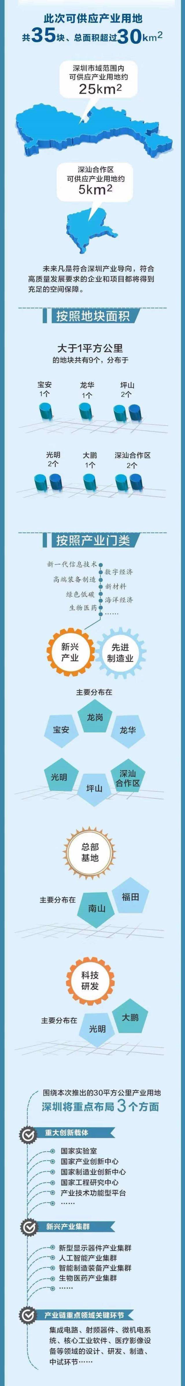本次推出的30平方公里產(chǎn)業(yè)用地,將重點(diǎn)布局重大創(chuàng)新載體、新興產(chǎn)業(yè)集群和產(chǎn)業(yè)鏈重點(diǎn)領(lǐng)域關(guān)鍵環(huán)節(jié)等三大方向,對(duì)于深圳率先建設(shè)體現(xiàn)高質(zhì)量發(fā)展要求的現(xiàn)代化經(jīng)濟(jì)體系發(fā)揮關(guān)鍵性支撐作用。