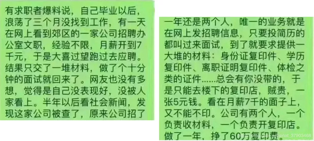 見圳客戶端·深圳新聞網(wǎng)2019年11月7日訊 有個帖子,最近廣為流傳,說是有騙子掛羊頭賣狗肉,打著公司招聘的幌子賺應(yīng)聘者的復印費,復印一張5塊錢,竟年入60萬!