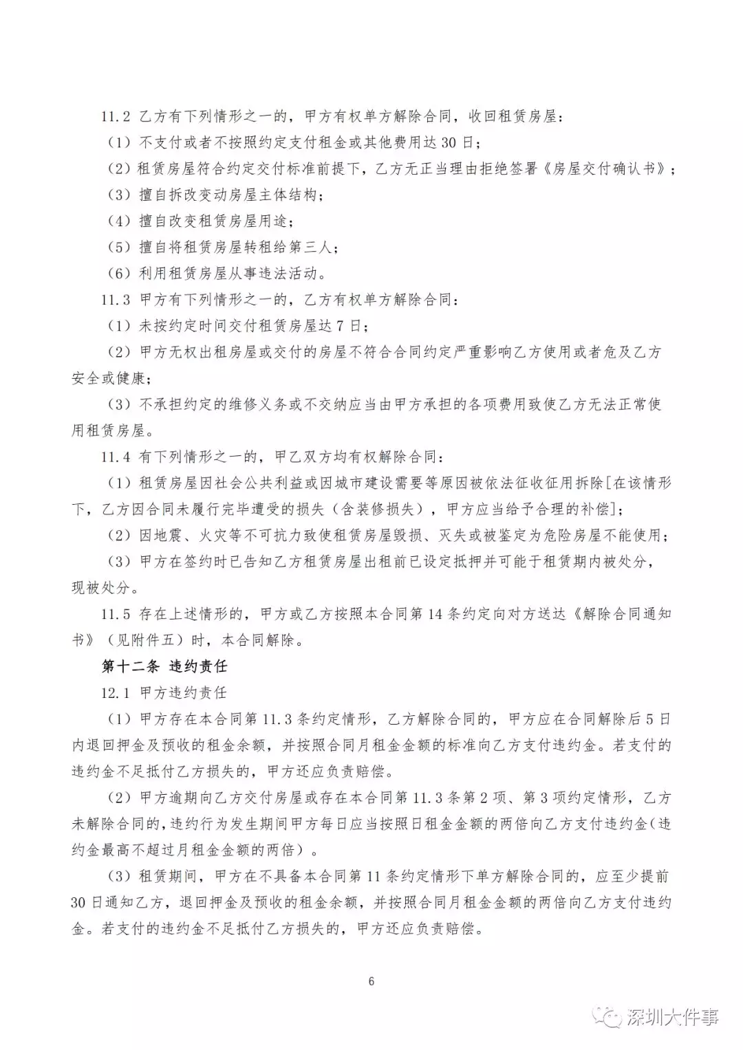 7、強化落實房屋安全主體責(zé)任,新版合同保留了舊版合同附件《深圳市房屋租賃安全管理責(zé)任書》,要求租賃雙方當(dāng)事人必須簽訂該責(zé)任書,否則房屋租賃主管部門不受理合同登記備案。