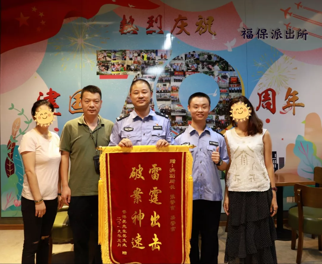 近日,在得知殷某平被繩之以法后,事主的妻子吳太太迅速趕到福保派出所向民警張健贈送錦旗表達(dá)感謝,感激之情溢于言表。