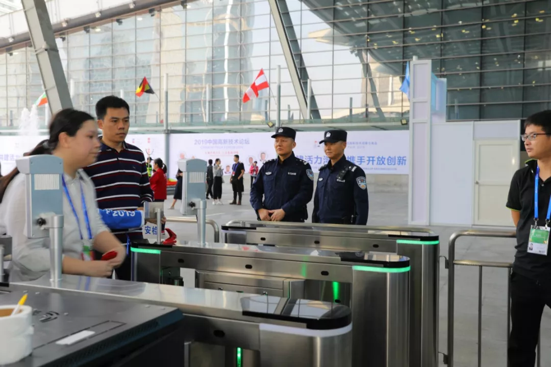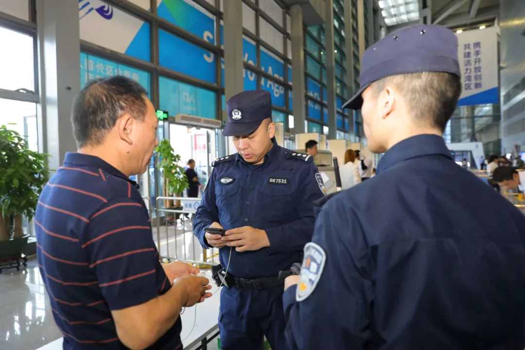 福田公安分局堅持科技興警、改革強警,以科技信息化手段為支撐點,在會展中心12個安檢口設置34個安檢門,安裝人像識別設備和視頻監(jiān)控,同時嚴查車輛、人員和物品,嚴控管制器具和易燃易爆物品等,確保場館內(nèi)外防控無死角、全覆蓋。