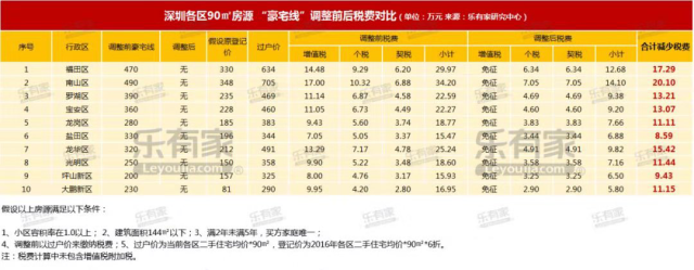 90㎡房子在深圳各區(qū)豪宅稅調(diào)整后減少稅費(fèi)情況,來自樂有家研究中心