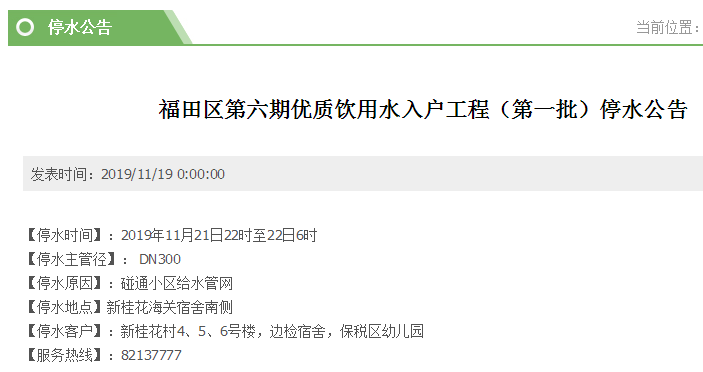 停水時(shí)間:11月21日23時(shí)至22日8時(shí)