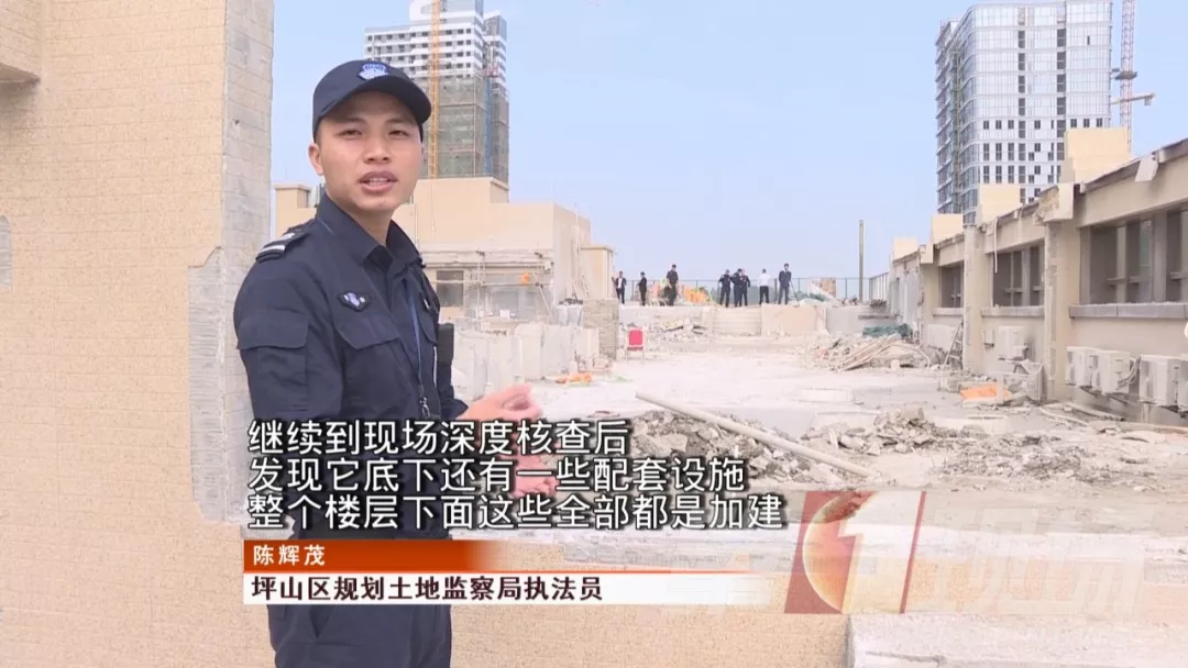 原本應(yīng)該是水泥平臺(tái)的樓頂,現(xiàn)在卻顯示為藍(lán)色花紋影像,發(fā)現(xiàn)這個(gè)情況后,坪山區(qū)規(guī)劃土地監(jiān)察局立即組織工作人員進(jìn)行核查。結(jié)果發(fā)現(xiàn),是在樓房經(jīng)過(guò)規(guī)劃驗(yàn)收后,開發(fā)商偷偷建設(shè)了一處游泳池。
