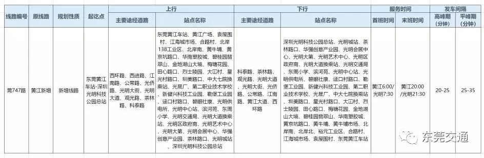 東莞跨市公交線路還有莞747路!