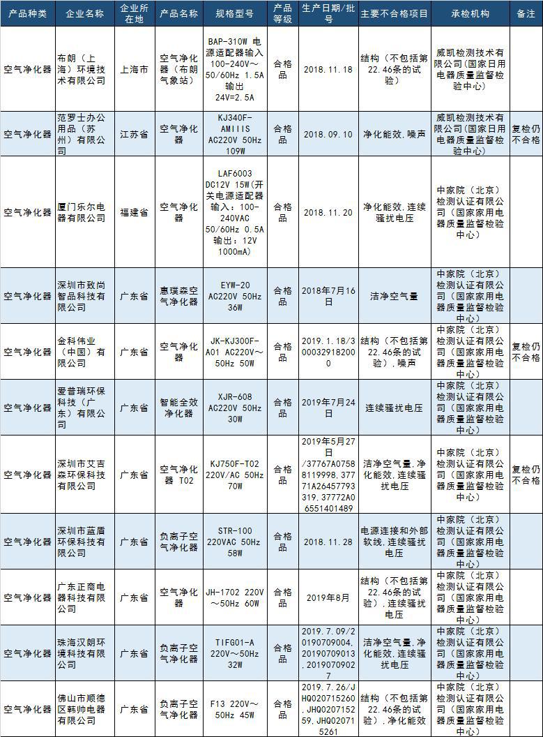 其中,深圳市艾吉森環(huán)保科技有限公司生產(chǎn)的空氣凈化器復(fù)檢仍不合格。