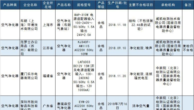 其中,深圳市艾吉森環(huán)保科技有限公司生產(chǎn)的空氣凈化器復(fù)檢仍不合格。