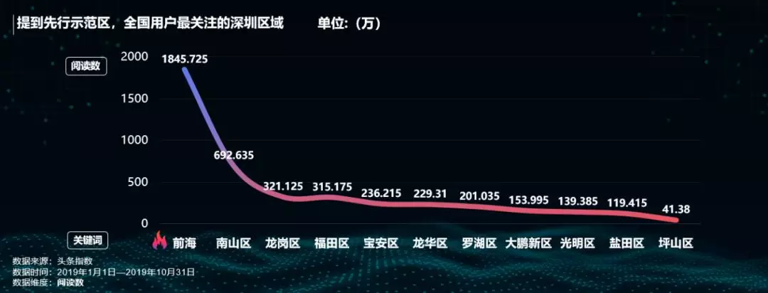 提到先行示范區(qū),全國網(wǎng)友最關(guān)注的深圳區(qū)域是前海和南山區(qū)。作為特區(qū)中的特區(qū),前海將奮力成為先行示范區(qū)核心引擎區(qū)域,關(guān)注度遙遙領(lǐng)先。而被譽為“中國硅谷”的南山,在科技大熱的今年,關(guān)注度僅次于前海。