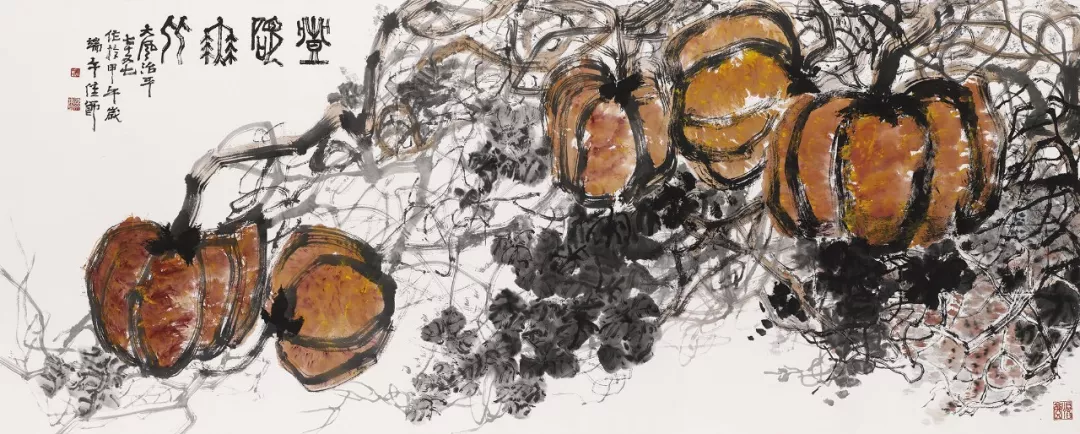 魏治平先生的畫(huà),尤以藤類見(jiàn)長(zhǎng),構(gòu)圖奇異,筆酣墨飽;他最為推崇齊白石,繪畫(huà)技法亦師法齊白石、吳昌碩、端木夢(mèng)錫等人,瓜果菜蔬鳥(niǎo)蟲(chóng)魚(yú),無(wú)一不獨(dú)出心裁,氣象崢嶸,水墨淋漓之間極富創(chuàng)作精神,他筆下的南瓜、紫藤、凌霄、葡萄等更有齊白石、吳昌碩之風(fēng),自成一派,奔放不離法度,神微孕育氣魄。