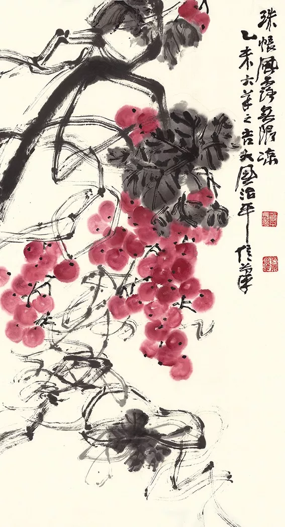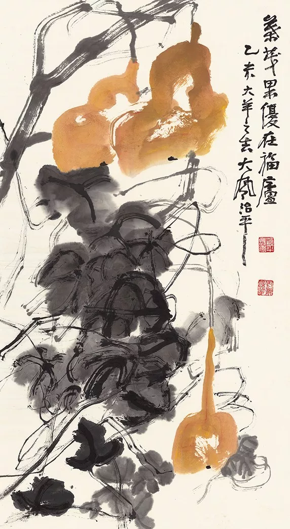 魏治平的畫(huà),尤以藤類見(jiàn)長(zhǎng),構(gòu)圖奇異,筆酣墨飽,瓜果菜蔬鳥(niǎo)蟲(chóng)魚(yú),無(wú)一不獨(dú)出心裁,氣象崢嶸,水墨淋漓之間極富創(chuàng)作精神,他筆下的南瓜、紫藤、凌霄、葡萄等更有齊白石、吳昌碩之風(fēng),自成一派,奔放不離法度,神微孕育氣魄。