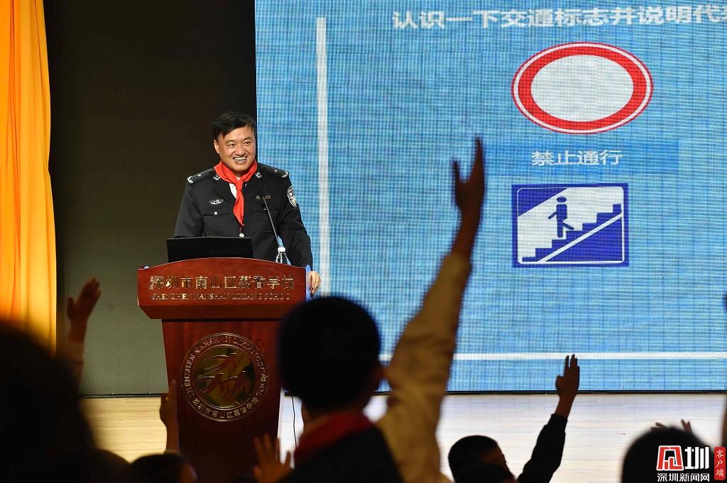 2019年2月20日,南山區(qū)荔香學校,市交警局局長徐煒正在向學生們講述交通安全知識。為加強2019年度新學期校園交通安全宣傳工作,深圳交警聯合市教育局在新學期開學期間,在全市范圍開展“交通安全教育第一課”授課活動。
