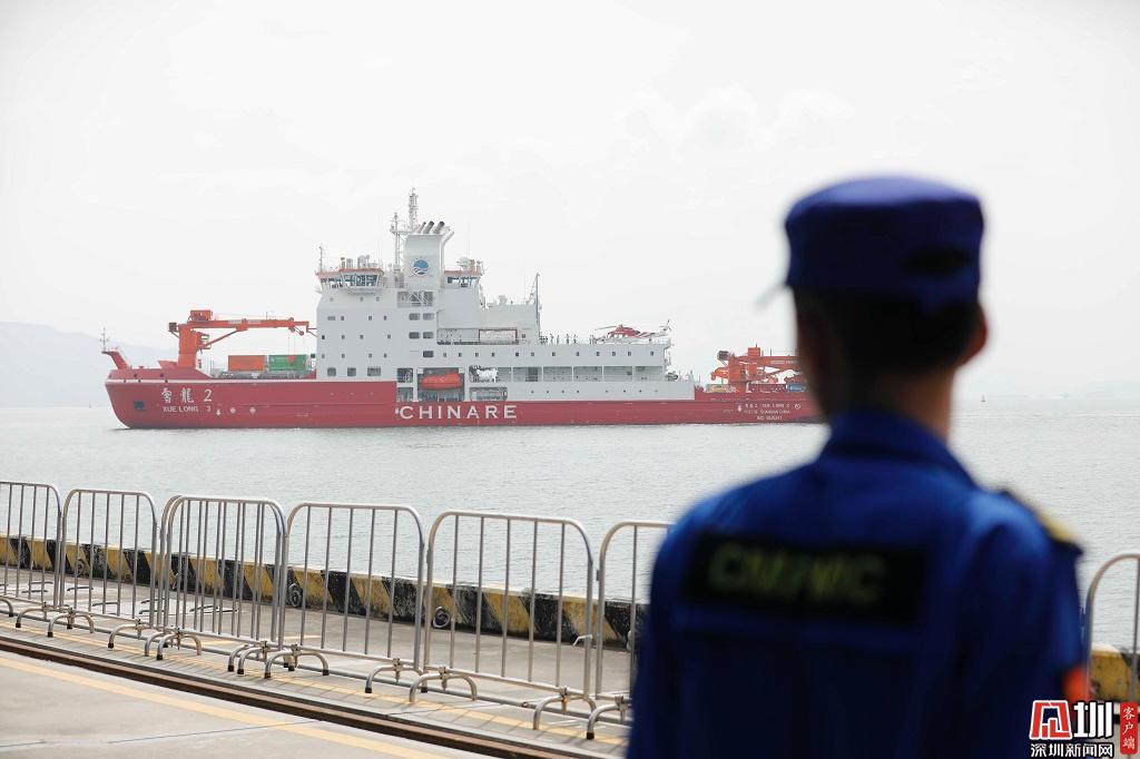 2019年10月13日,蛇口郵輪母港,中國自主建造的首艘極地科考破冰船“雪龍2”號抵達深圳蛇口郵輪母港CR2碼頭。