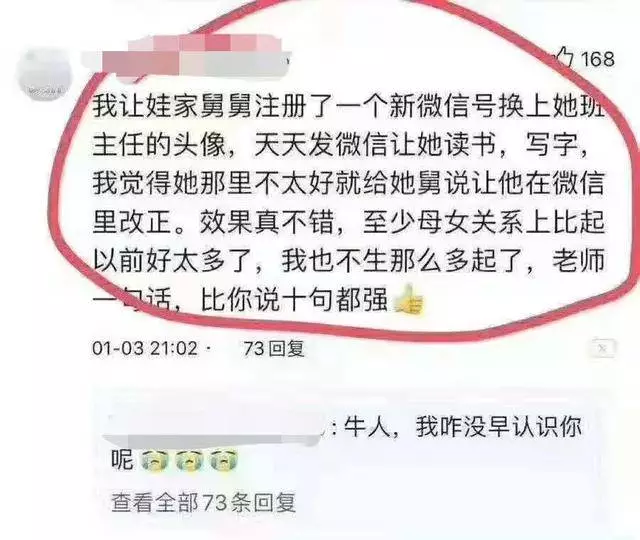 “牛人,我咋沒早點認(rèn)識你呢?”“人才啊”……此奇招一出,家長們紛紛感嘆。也有家長擔(dān)心:“萬一穿幫了,對孩子傷害很大,家長信用大打折扣!”