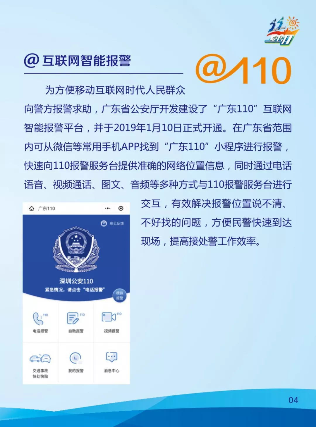 “廣東110”除了報(bào)警功能,還將上線新功能!“110宣傳日”當(dāng)天,“廣東110”報(bào)警小程序的交通事故快處快賠功能上線。還可了解到深圳交警星級(jí)用戶輕微事故遠(yuǎn)程處理系統(tǒng)相關(guān)資訊,現(xiàn)場教您輕松掌握交通事故快處快賠辦法。
