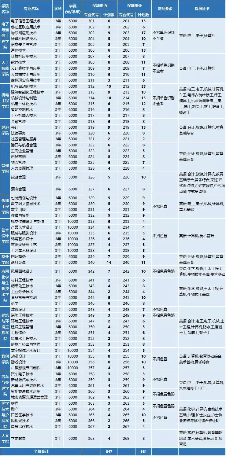 ②以下各招生專業(yè)、專業(yè)代號、計劃數(shù)、選報證書、特征要求等及其它備注以廣東省招生辦公布的專業(yè)目錄為準;