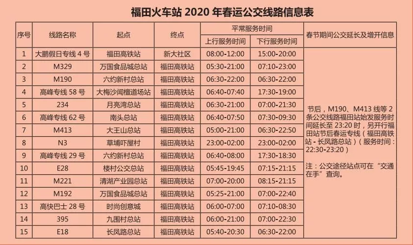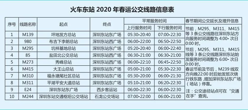 見(jiàn)圳客戶端·深圳新聞網(wǎng)2020年1月20日訊 又將迎來(lái)離深高峰,為方便大伙趕高鐵火車(chē),深圳的公交地鐵都開(kāi)啟最強(qiáng)加班模式,延長(zhǎng)服務(wù)時(shí)間。很多小伙伴就很關(guān)心,途經(jīng)各大火車(chē)站的公交線有哪些?運(yùn)營(yíng)的時(shí)間是幾點(diǎn)?