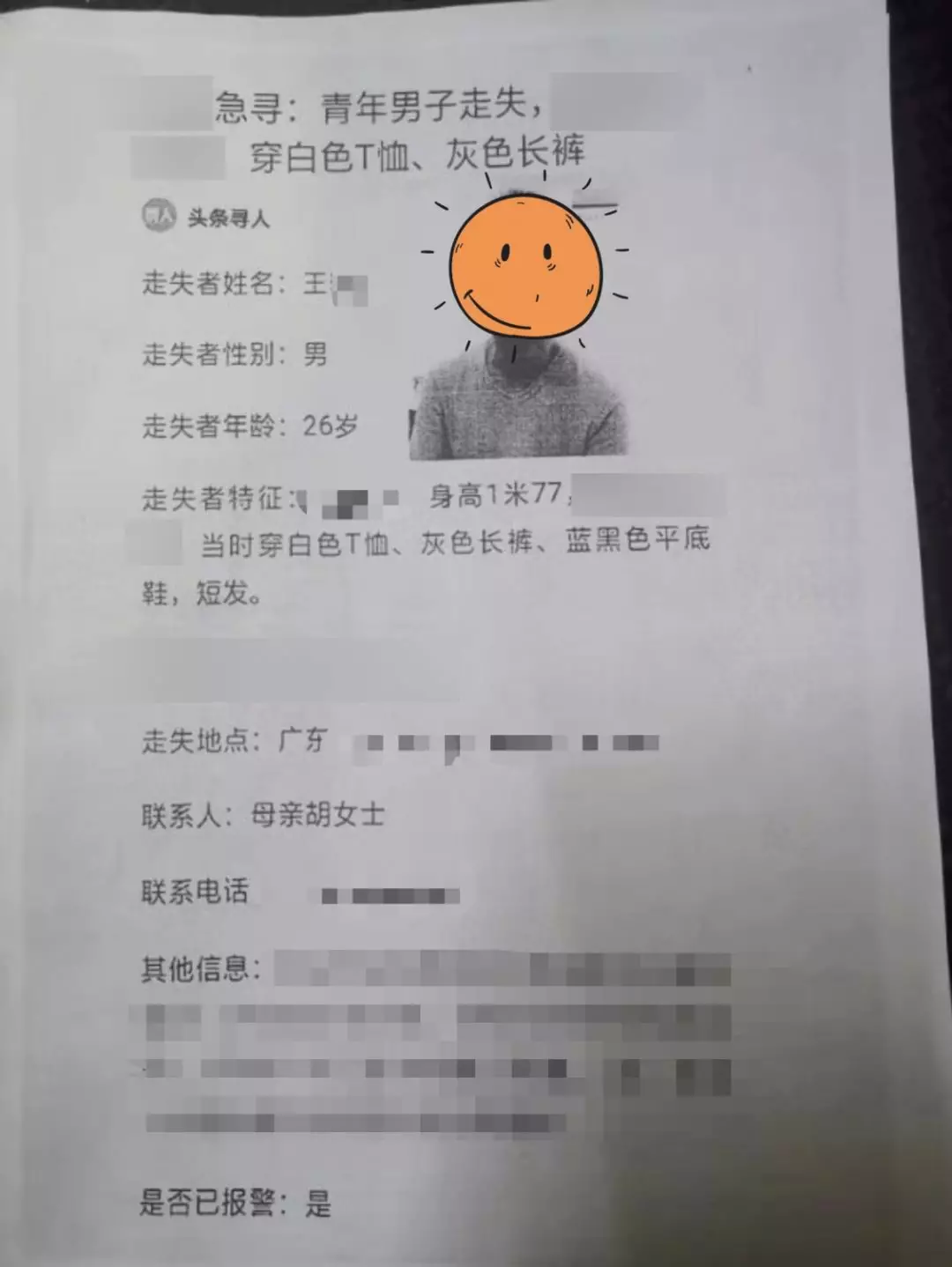 “找著了!找著了!”1月20日下午17時(shí)許,自1月13日走失的患病青年男子,在深圳某中學(xué)附近天橋平安找回,此時(shí),離走失人員父母到福田派出所報(bào)案,不到30分鐘找回走失人員!