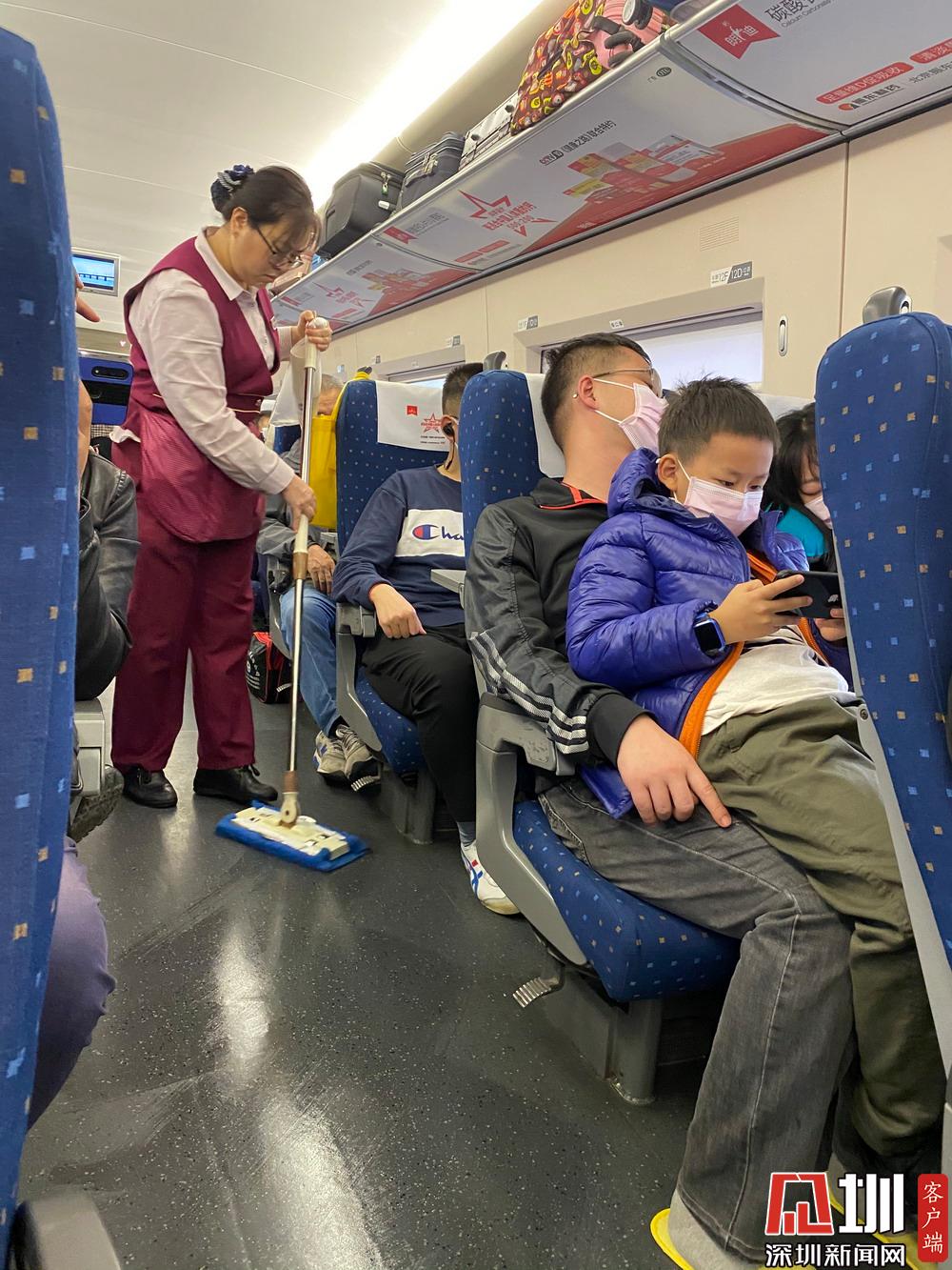 這個(gè)姐姐,隔一會(huì)兒就過(guò)來(lái)拖一次地,所以整個(gè)車(chē)廂都特別干凈!見(jiàn)圳客戶端、深圳新聞網(wǎng)記者 劉婷 攝