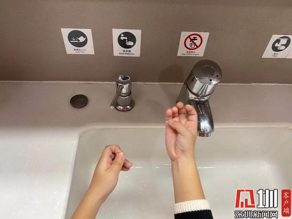 我好像聽(tīng)見(jiàn)我的肚子開(kāi)始叫了,媽媽讓我先洗手才能吃東西。洗手池這里有洗手液和一次性擦手紙,水都是溫的,洗手的時(shí)候很舒服。見(jiàn)圳客戶端、深圳新聞網(wǎng)記者 劉婷 攝