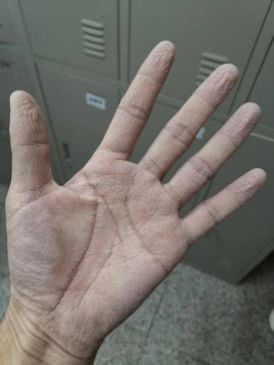 28歲的王濤下夜班后,脫下厚厚的防護(hù)服,摘下手套,用手機(jī)拍下了自己習(xí)以為常的手。