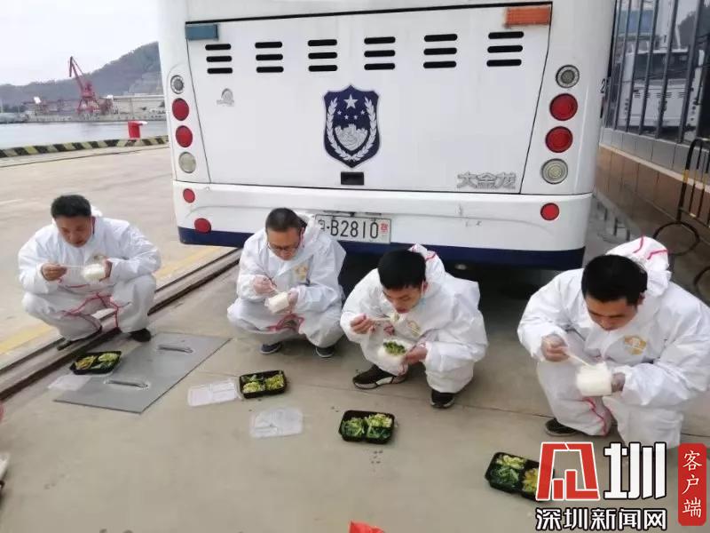 應急轉運“歌詩達·威尼斯號”乘客期間,工作人員抓緊時間吃午飯。