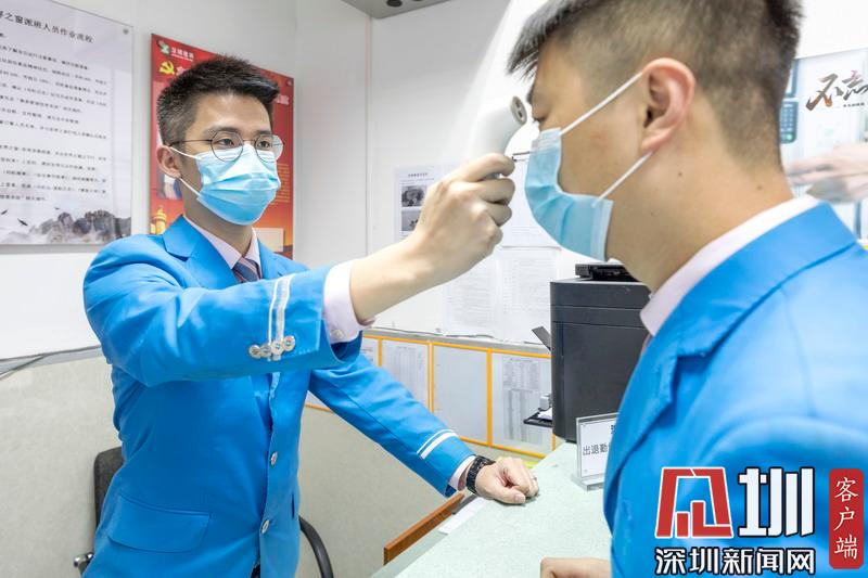 深圳地鐵工作人員對往來乘客進行體溫檢測。