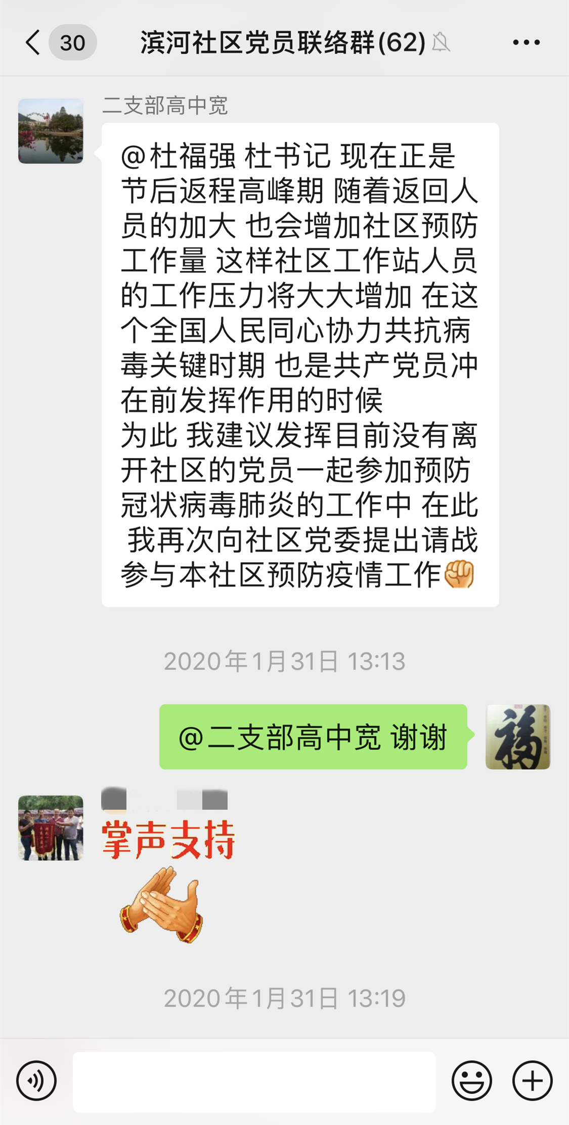 深圳新聞網(wǎng)2月2日訊(見圳客戶端、深圳新聞網(wǎng)記者 邱曉潔)“在此,我再次向社區(qū)黨委提出請戰(zhàn)參與本社區(qū)預防疫情工作?!?月31日,福田區(qū)南園街道濱河社區(qū)老黨員高中寬在濱河社區(qū)黨員聯(lián)絡微信群里再次主動請纓參與社區(qū)疫情防控工作。