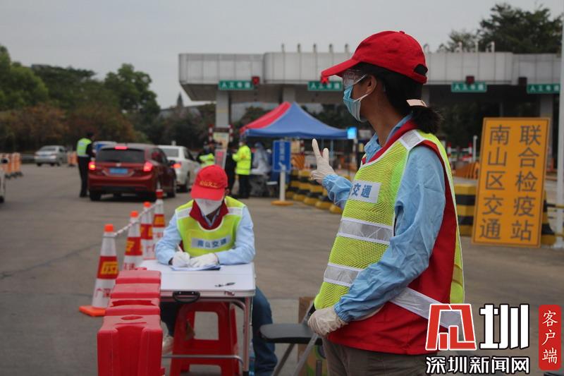 見圳客戶端·深圳新聞網(wǎng)2020年2月3日訊(見圳客戶端、深圳新聞網(wǎng)記者吳梓欣)眼下正值返深高峰期,為控制疫情影響,近日,深圳交通運輸局在城市出入要道都設(shè)置了檢疫區(qū)?!按蜷_車窗,帶好口罩,測量體溫……”2月2日,記者在南頭收費站看到交警正為過往車輛及人員測量體溫,在身著“南山交通”黃馬甲的交通檢查隊伍中還有一抹熟悉的紅色——深圳義工。