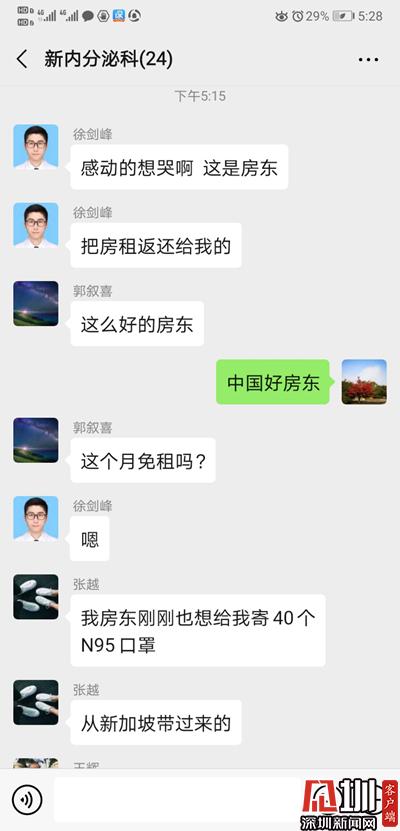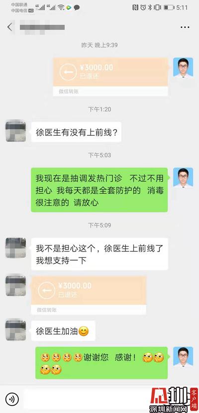 2日上午,寶安中醫(yī)院(集團)隔離病房工作的徐醫(yī)生,遇到了令他十分感動的事。他通過微信向房東交房租,房東問他是不是在防控前線工作,徐醫(yī)生以為房東怕傳染而嫌棄他,連忙向房東解釋自己做好了防護消毒,不用擔心,沒想到房東直接把房租退了回去,表示要支持徐醫(yī)生在前線工作,真是暖心啊!