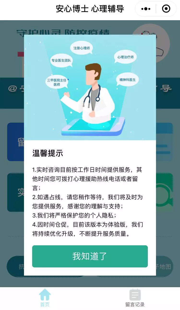 無論您是對疫情防護有疑問,或是想要需求心理幫助,都可以24小時進行咨詢留言,安心博士有問必答、有呼必應,讓大家在疫情防控中堅定信心,共克時艱。