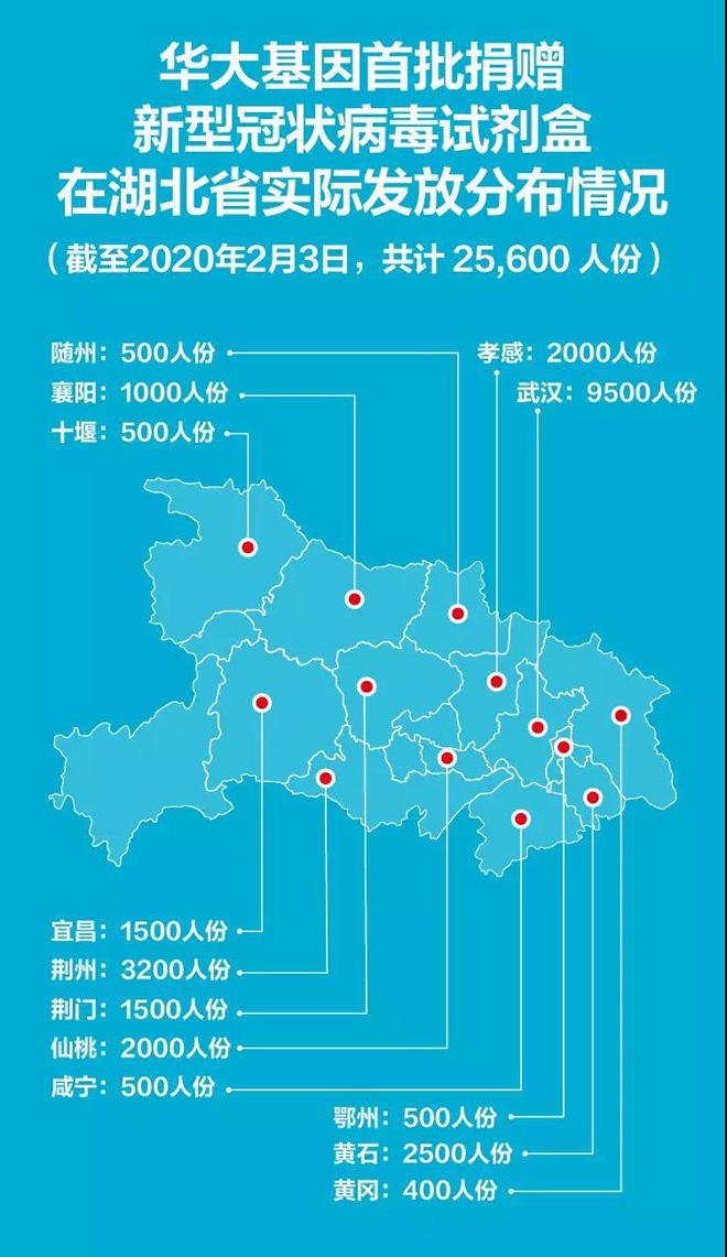 見(jiàn)圳客戶端.深圳新聞網(wǎng)訊(記者 鄭創(chuàng)彬)2月5日,記者獲悉,華大基因首批承諾向湖北地區(qū)捐贈(zèng)的2萬(wàn)人份新型冠狀病毒試劑盒(每盒50人份),實(shí)際已發(fā)貨到位2.56萬(wàn)人份。其中,武漢市發(fā)放9500人份,湖北(非武漢地區(qū))發(fā)放1.61萬(wàn)人份。目前,針對(duì)湖北地區(qū)的試劑盒捐贈(zèng)仍在進(jìn)行中。