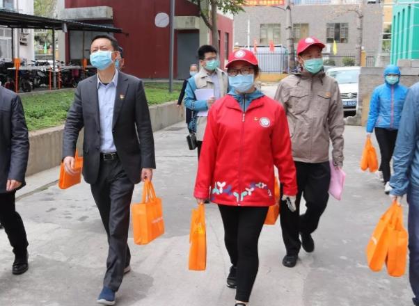 慰問社區(qū)一線工作人員,為他們加油鼓勁。