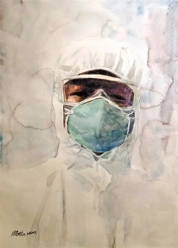 魯文詠在詩(shī)歌《最美的人,你看不見(jiàn)臉》中寫(xiě)道:“最美的人,你看不見(jiàn)他們的臉。他們的臉被口罩遮著,被護(hù)目鏡遮著,被防護(hù)服遮著,有時(shí),也被夜色遮著。他們?cè)谌巳豪锎┬?,在焦灼的企望的目光里穿行。他們?lái)了,他們穿過(guò),焦躁的人群就安靜下來(lái)。最美的人,你看不見(jiàn)他們的臉,看不見(jiàn)年齡,甚至性別。是的,天使不計(jì)年齡,天使不分性別?!?/p>