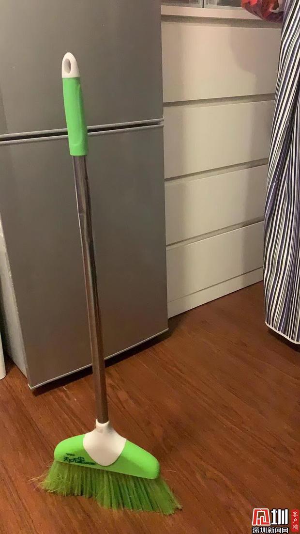 邊做飯,邊立掃把