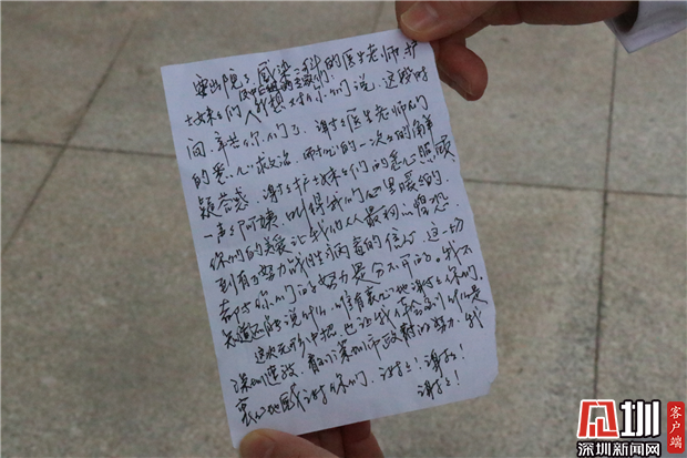 出院患者手寫感謝信