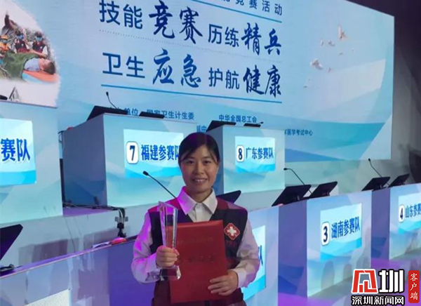 曠翠萍在全國衛(wèi)生應急技能大賽獲獎現(xiàn)場。