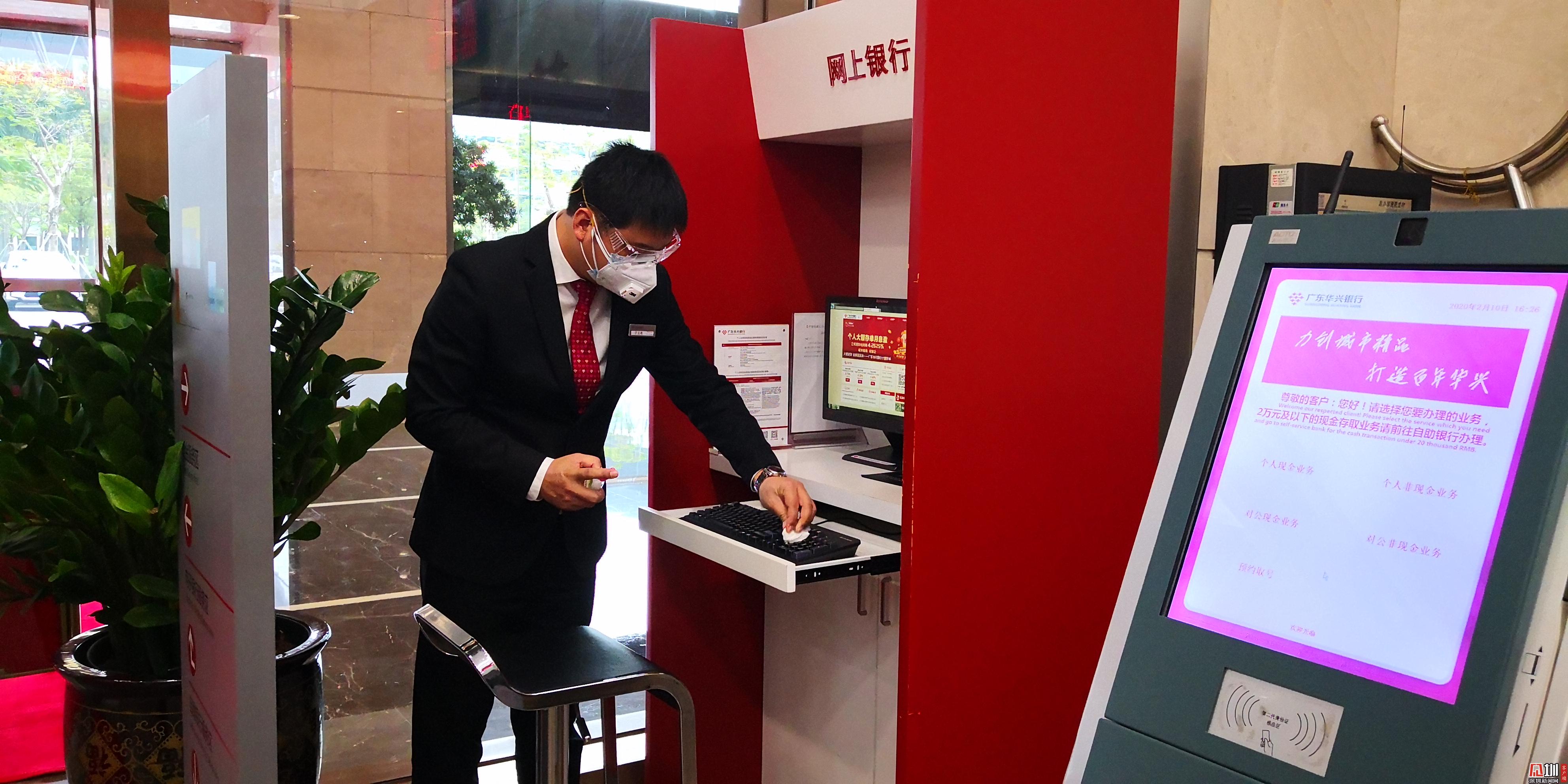 記者走訪發(fā)現(xiàn),很多銀行都適當(dāng)調(diào)整了線下營業(yè)網(wǎng)點(diǎn)的營業(yè)時間,以減少人員聚集。各大銀行的營業(yè)時間可在其網(wǎng)站、公眾號、銀行App等官方渠道查詢。同時員工在上崗前必須測量體溫,在崗全程佩戴口罩。此外,網(wǎng)點(diǎn)對營業(yè)廳等公共區(qū)域進(jìn)行全面消毒,特別是對柜臺桌椅、密碼鍵盤、自助機(jī)具等客戶接觸的設(shè)備進(jìn)行高頻消毒。進(jìn)入網(wǎng)點(diǎn)辦業(yè)務(wù)的市民,要佩戴口罩,配合網(wǎng)點(diǎn)進(jìn)行體溫測量,并登記相關(guān)信息。同時,為滿足客戶現(xiàn)金存取需要,確??蛻粲蒙稀胺判腻X”、“衛(wèi)生錢”,銀行嚴(yán)格規(guī)范了現(xiàn)金業(yè)務(wù)操作,實行回收鈔券,并對運(yùn)鈔箱從網(wǎng)點(diǎn)到金庫進(jìn)行全流程消毒,切斷疫情的現(xiàn)金傳播途徑。自2020年2月3日起,深圳人行向社會公眾投放的鈔票全部為新鈔。(點(diǎn)擊相關(guān)新聞:錢幣怎么消毒?原來銀行是這么做的!)