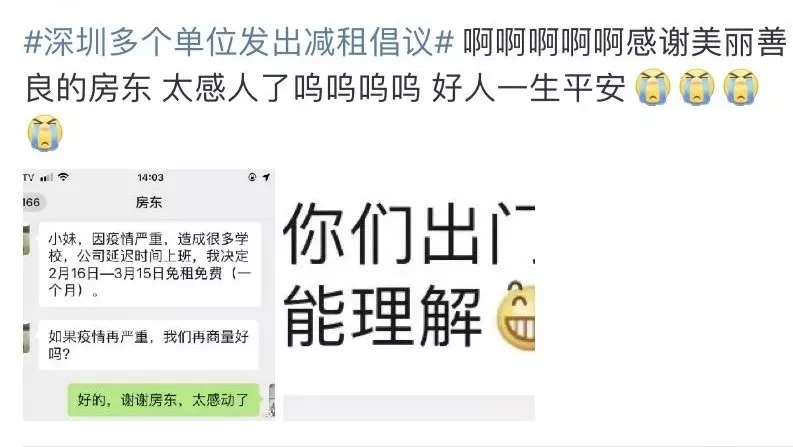 C******a:我有一位龍崗朋友是房東,他們給所有租客都減免了半個(gè)月的房租。暖心感動(dòng)!