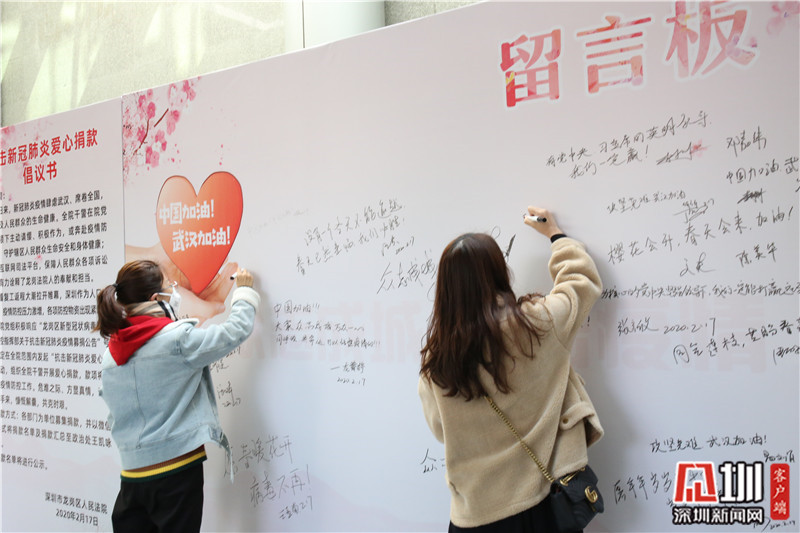 與此同時(shí),龍崗法院黨組積極響應(yīng)龍崗區(qū)疫情防控指揮部關(guān)于抗疫募捐的號(hào)召,于2月16日晚向全院發(fā)出了“抗擊新冠肺炎愛(ài)心捐款”倡議,號(hào)召全院干警積極開(kāi)展愛(ài)心捐款及留言祝?;顒?dòng)。2月17日,龍崗法院領(lǐng)導(dǎo)帶頭捐款,廣大干警紛紛慷慨解囊,同時(shí)在留言板寫(xiě)下了戰(zhàn)“疫”必勝的信心和對(duì)武漢對(duì)祖國(guó)的美好祝愿。短短一天時(shí)間里共有523人奉獻(xiàn)愛(ài)心,募集善款107490元。