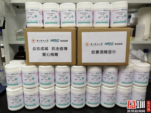 據(jù)悉,首批捐贈的護(hù)目鏡防霧酒精濕巾數(shù)量為6000張(100桶)。該濕巾由孫大陟和南科大首屆畢業(yè)生張至共同發(fā)起創(chuàng)立的深圳南科新材科技有限公司和孫大陟課題組共同緊急研發(fā)趕制,簡單擦拭后可保證護(hù)目鏡鏡片長時間不起霧,對人體人眼無毒無害,且能起到有效消殺病菌作用。每片濕巾可至少擦拭一副護(hù)目鏡,防霧效果可至少持續(xù)一天,大大節(jié)省了醫(yī)護(hù)人員清潔裝備的時間,為爭分奪秒抗擊疫情提供了有利條件。